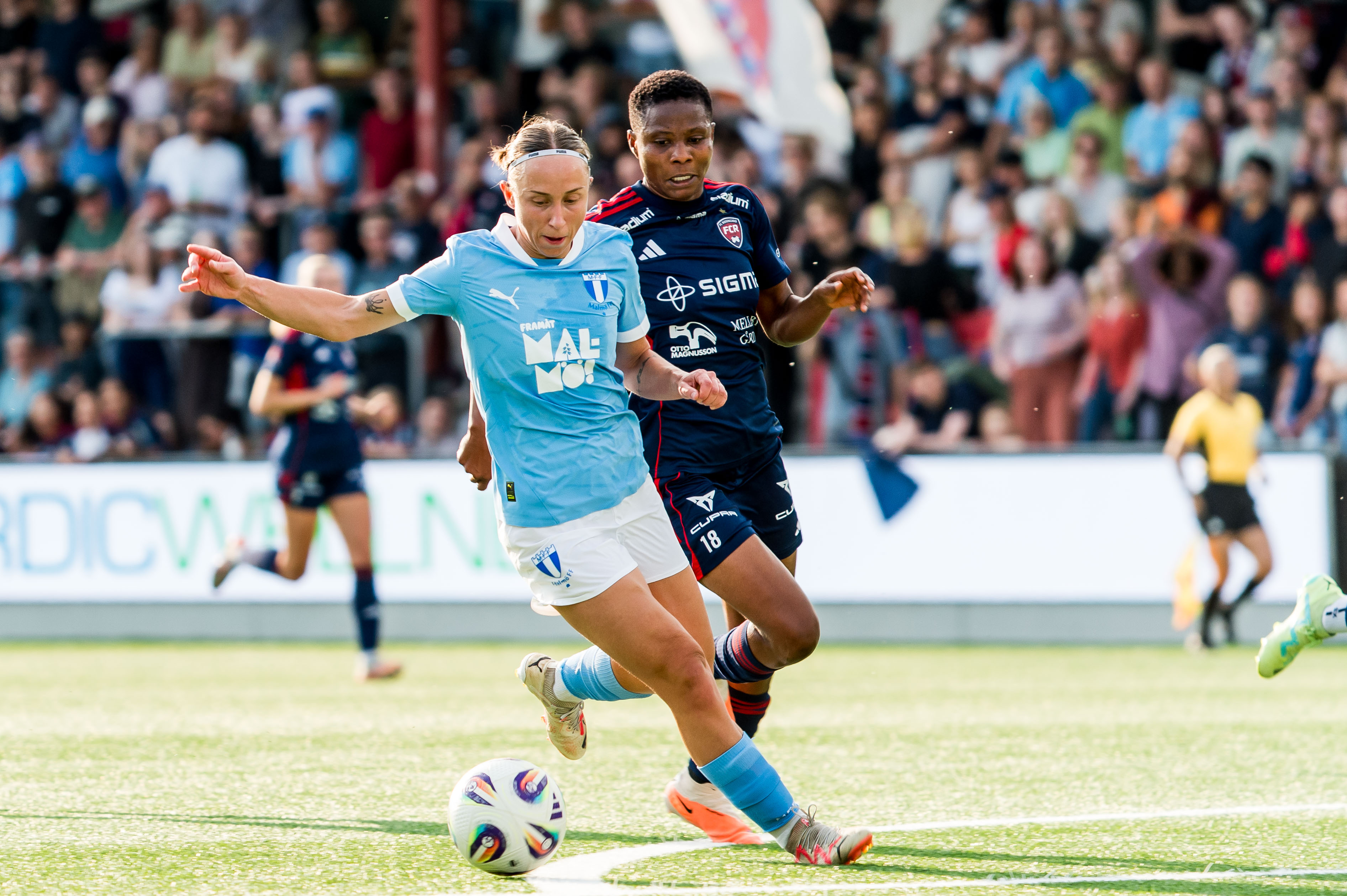 33´ | Molly Johansson försöker komma till avslut men bollen blockas ut till en hörna av Nathalie Hoff Persson. |