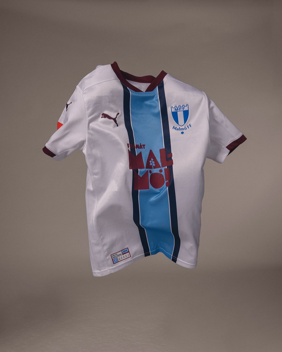 Den nya tredjetröjan är vit med en distinkt blå rand och vinröda detaljer. Matchstället kompletteras med vita shorts och vinröda strumpor. En stilren design som både blickar bakåt och pekar framåt.