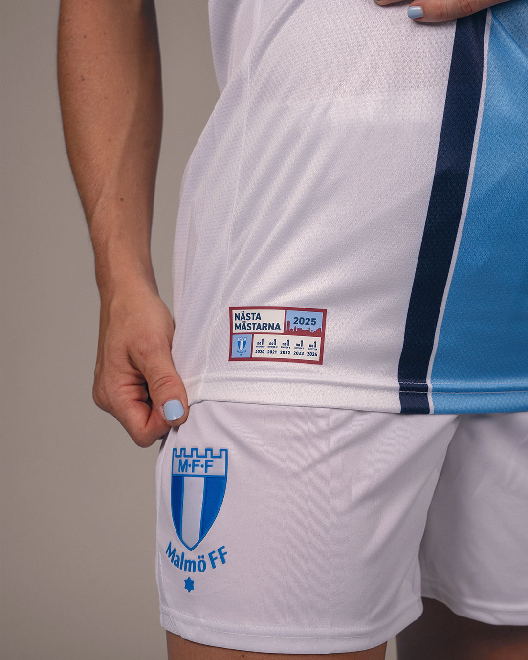 Tröjan bär också en unik patch med texten Nästa Mästarna, en hyllning till den resa vårt damlag gjort sedan återstarten 2020. Fem raka seriesegrar, från Division 4 till Elitettan, vittnar om målmedvetenhet, passion och en stark föreningskultur.