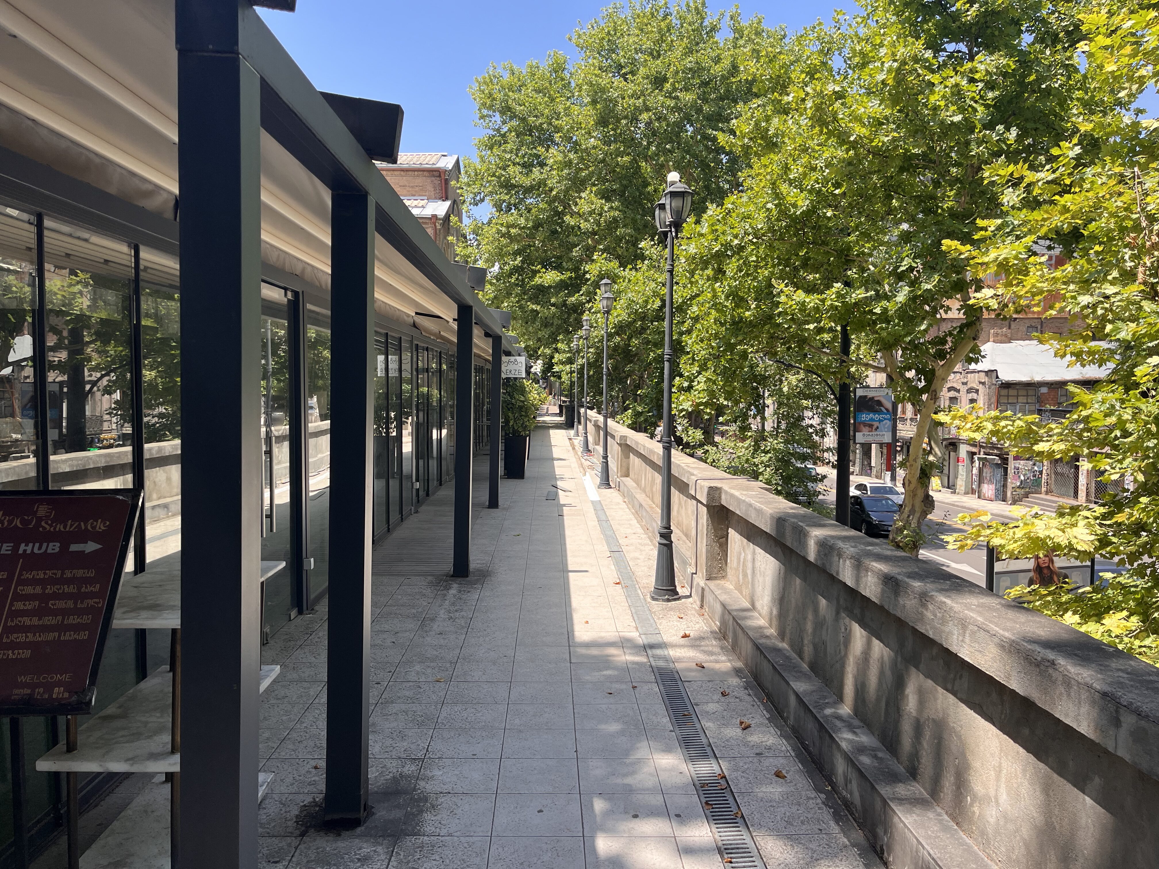 Det ligger i ett område med flera pubar och restauranger. För att komma in på området går man upp för en trappa som ligger lite gömd bakom en blomsteraffär i hörnet av Vasil Petriashvili Street och Petre Melikishvili Street. Väl uppe följer ni muren som går längs med Petre Melikishvili Street och efter 50 meter har ni Black Dog Bar på vänster sida.